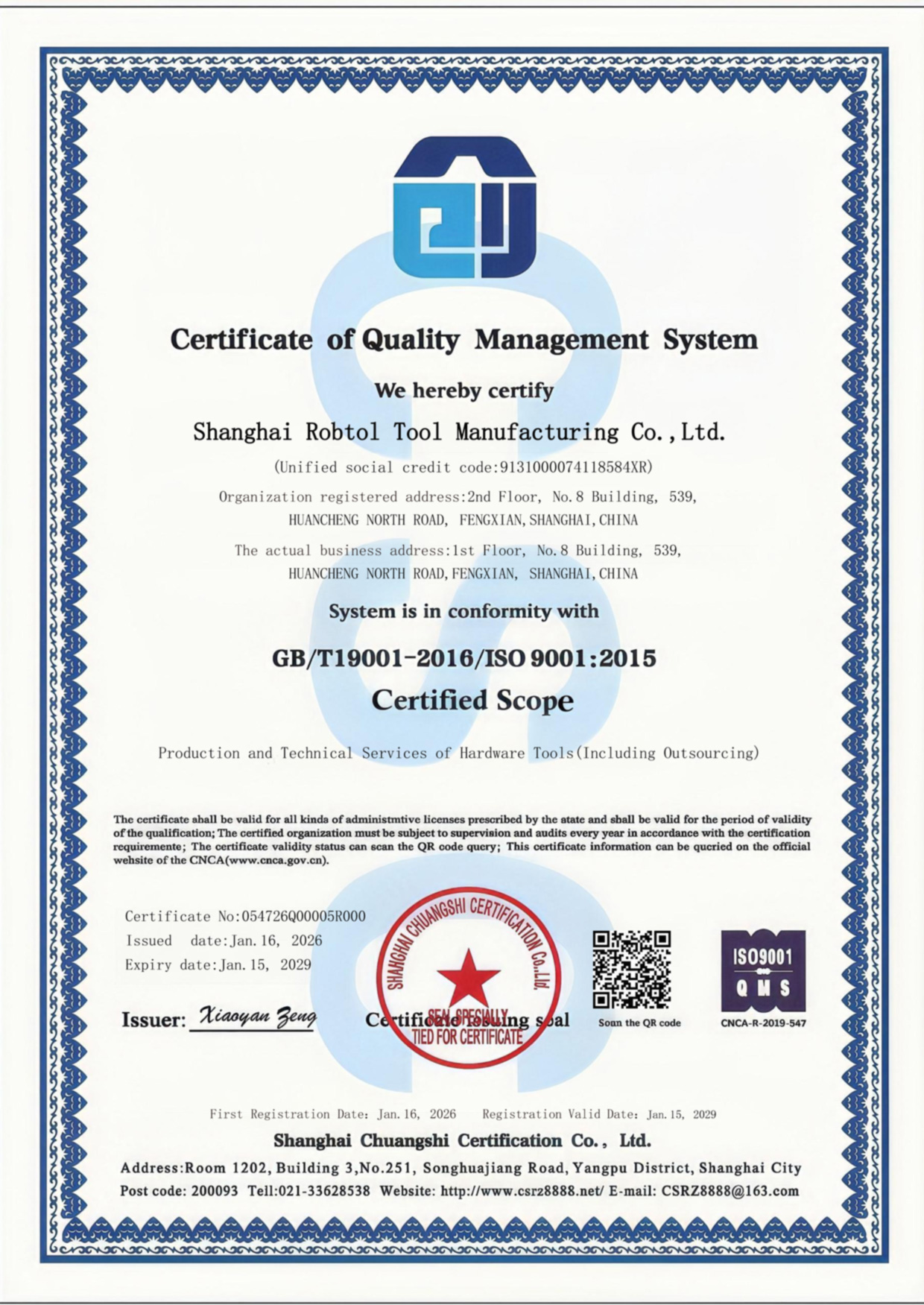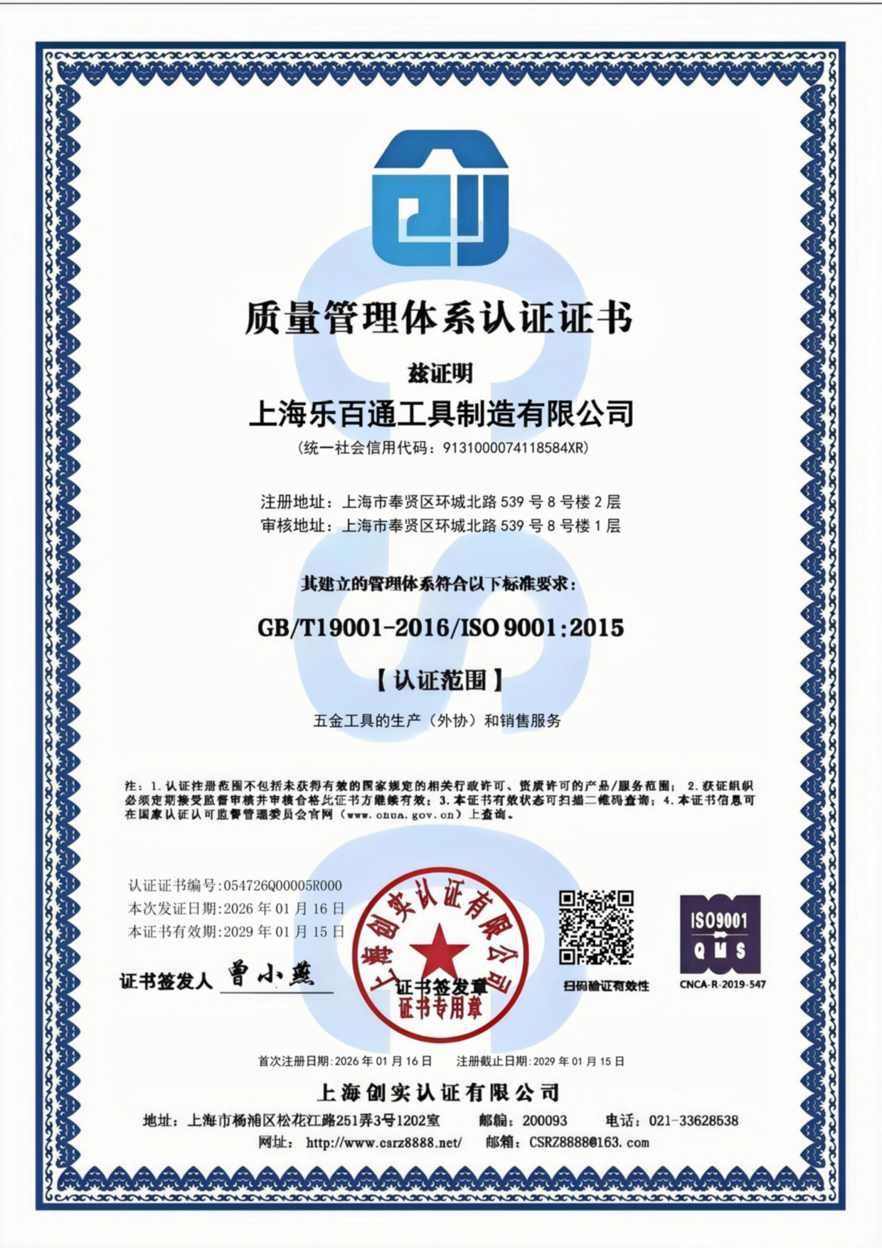 ISO 9001:2015 (Jan. 16, 2026)